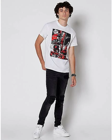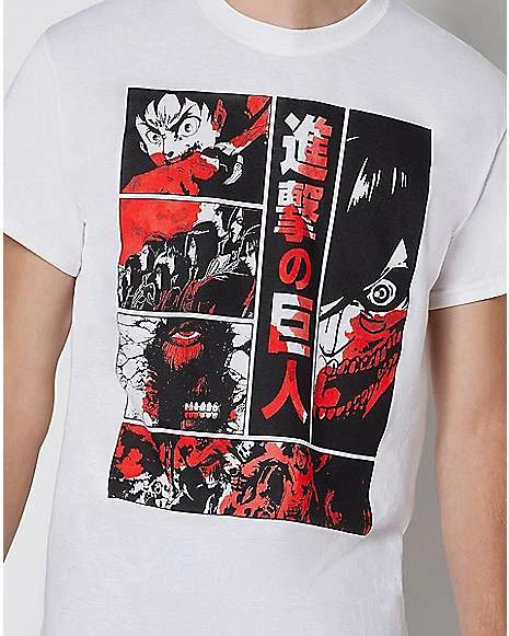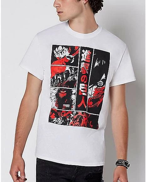 Face the Titans with confidence when you wear this red and black 6 panel Attack on Titans t shirt. Wear this cozy and colorful t shirt while you binge-watch your favorite Japanese manga series!