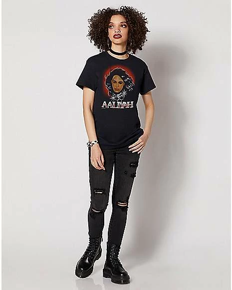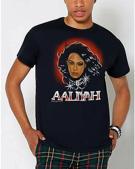 Put your musical taste front and center with this stylish Aaliyah t shirt! This graphic tee features an airbrushed image of Aaliyah and is perfect to wear any day of the week.