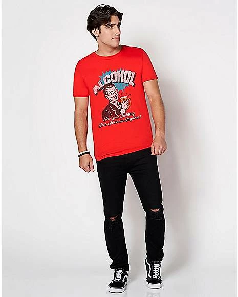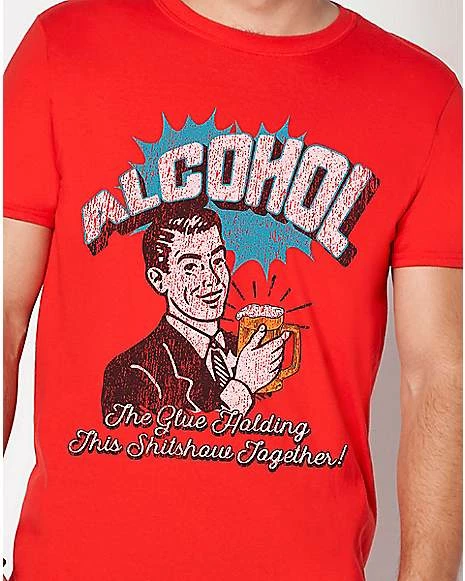 You’ll always be showing you love to get your drink on when you choose to add this Alcohol T Shirt to your casual look. This hilarious t shirt will always remind you what holds you and your crew together and is perfect for a night out with the gang.