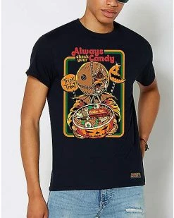 You’ll never forget to check your candy this Halloween while rocking this officially licensed Always Check Your Candy T Shirt. This Steven Rhodes tee is perfect for horror fans and features the horror movie icon Sam from Trick ‘r Treat.ย
