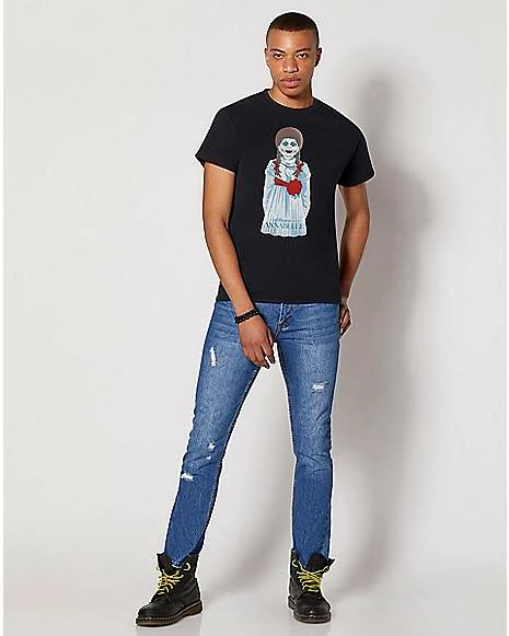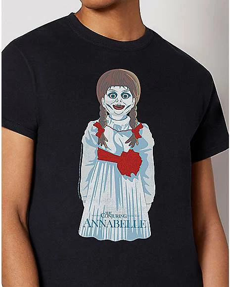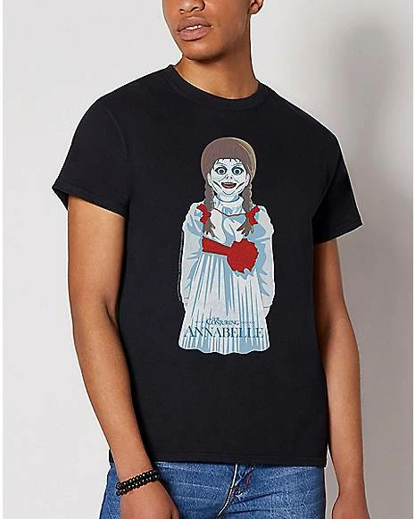 Terrify your friends and family when you show up wearing this officially licensed Annabelle T Shirt. This creepy tee is the perfect choice for any spooky outing and will show off your fandom for the film.