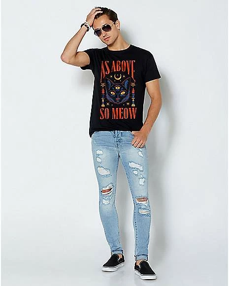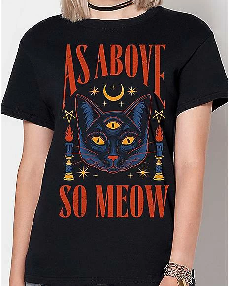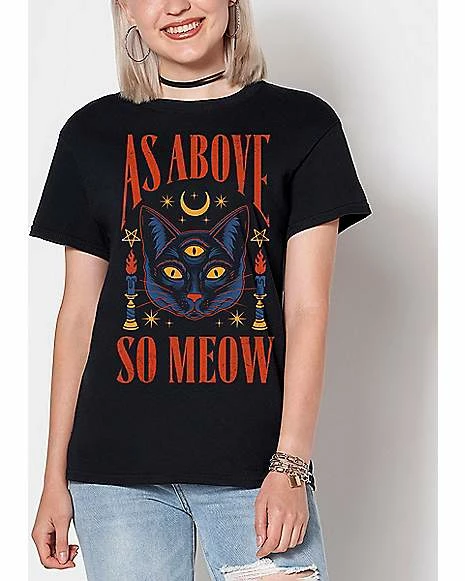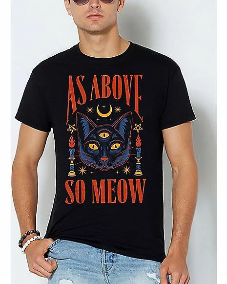 Add a fresh new look to your casual outfit by adding this As Above So Meow T Shirt to your casual wardrobe. This awesome tee from Thiago Correa is sure to have you looking and feeling your best in any situation.ย