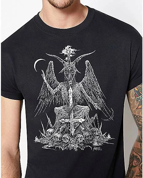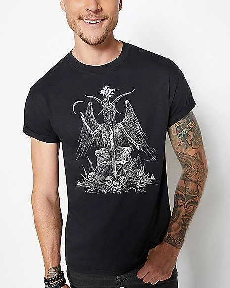 Add some dark vibes to your casual style by rocking this Baphomet T Shirt as part of your wardrobe. Featuring a terrifying Baphomet design on the front, this t shirt is perfect choice for anyone looking to transition to an edgier style.
