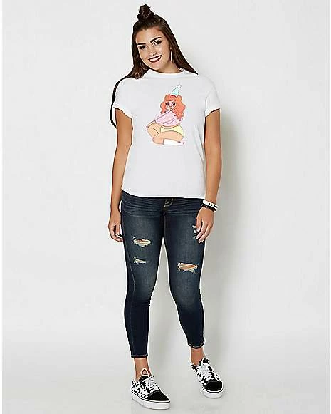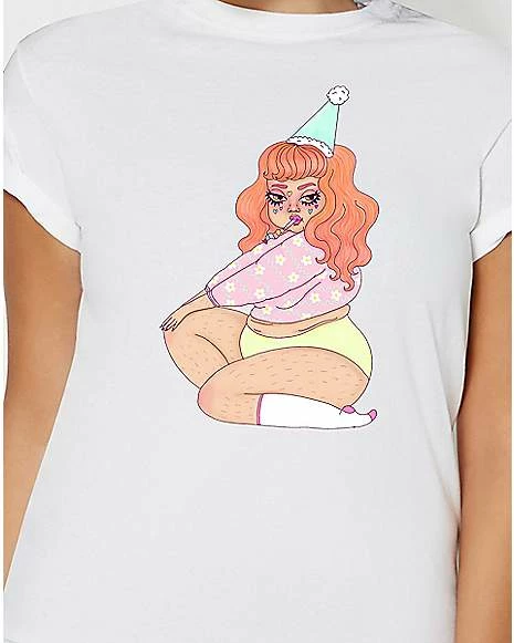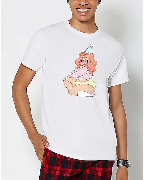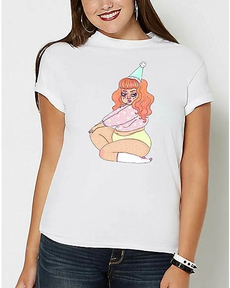 Party like it’s your birthday in this Joanna Thangiah t shirt! This pretty pastel t shirt depicts a birthday beauty in all her glory. This t shirt is a soft and sultry celebration of the female form.