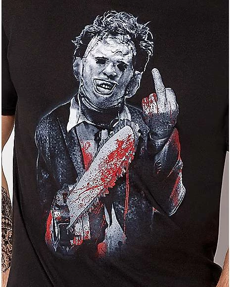 Uh-oh, Leatherface is here and he looks a little angry. Rock thisΒ Black Leatherface T Shirt as a tribute to the classic horror film,Β The Texas Chainsaw Massacre! You’ll look scary good in this tee.