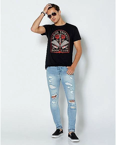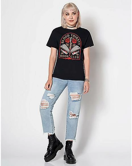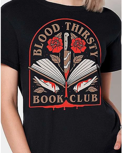 Add some fresh style to your wardrobe when you get this officially licensed Blood Thirsty Book Club T Shirt by Forensics & Flowers. This tee has an incredible design that’ll perfectly match your look!