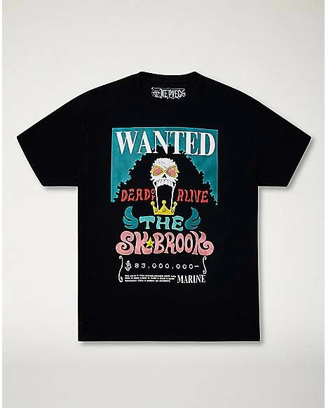 “Yo-hohoho, yo-hoho-ho!” Keep your entire pirate crew entertained all night long when you break into song wearing this officially licensed Brooke Wanted Poster T Shirt. With this One Piece T Shirt on you’ll always be showing that the Soul King, Brook is your favorite member of the Straw Hat crew and look ready for an adventure to any island.ย