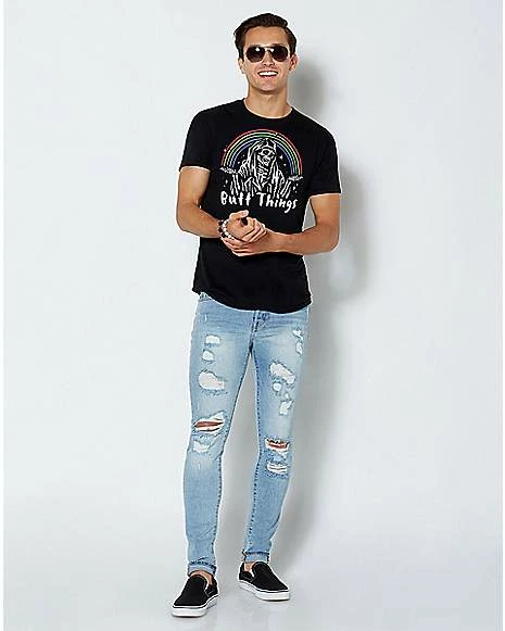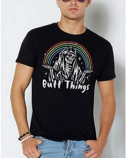 Show your pride and normalize talking about butt things with this Butt Things T Shirt. This stylish t shirt features a skeleton holding a rainbow on the front and will become one of your go-to tees whenever you’re looking for a good conversation starter.ย