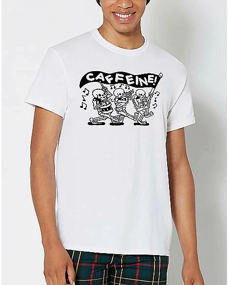 Change up your everyday look with some skeleton swag by adding this Skeleton Caffeine Band T Shirt to your casual style. This rad tee features a band of marching skeletons on the front that are in dire need of some caffeine and will make a great addition to your closet.