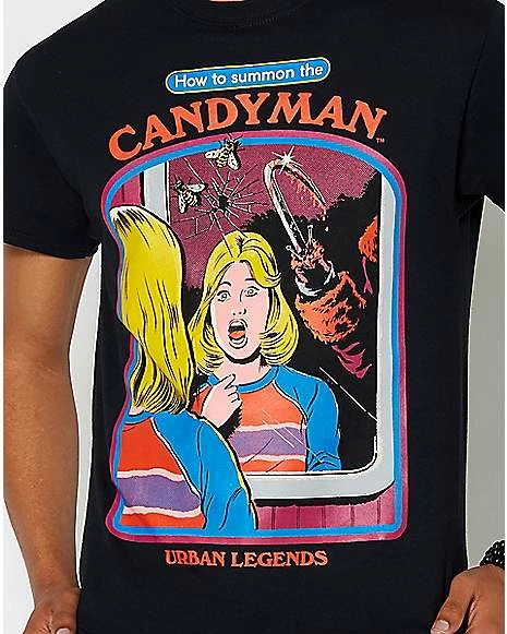 This Steven Rhodes tee features a design inspired by the cult-classic slasher flick Candyman! Whatever you do, donβt say his name five times.