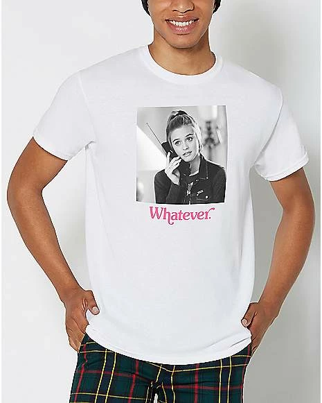 You couldn’t leave your house in the 1990’s without hearing the fiery phrase, “whatever” from teenagers everywhere. Cher Horowitz of the hit movie Clueless is responsible. Slip on this chicΒ Cher Whatever T Shirt to channel your inner Cher!