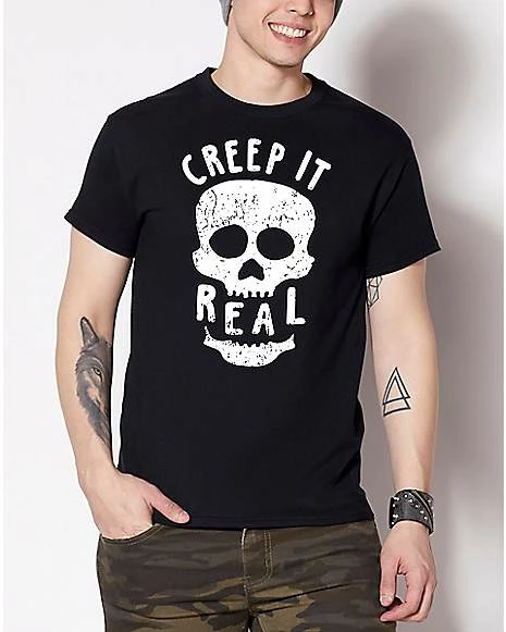 Creep it real this Halloween in this cozy Creepin’ It Real T Shirt! Featuring a grinning grim reaper and bold graphics, this laid-back tee is guaranteed to make you look good.