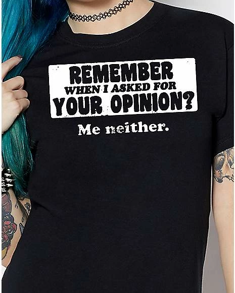 Let the world know how you’re feeling in thisΒ Did I Ask For Your Opinion T Shirt. This black and white tee is the perfect way to let everyone know that you didn’t ask for their opinion, and don’t care about it!Β