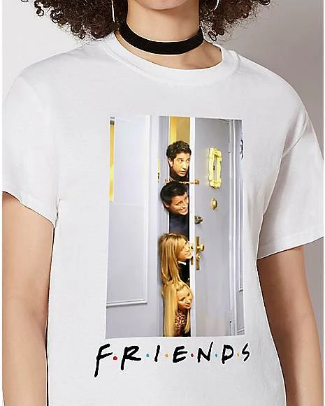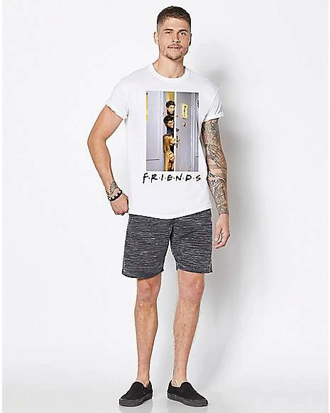 If you love watching Friends, you’ll love this classicΒ Doorway Group Photo T Shirt! This iconic t shirt features the floating heads of Ross, Joey, Rachel and Phoebe as they peek in on Chandler and Monica on Thanksgiving Day. Snag this t shirt for yourself or for the Friends fan in your life!