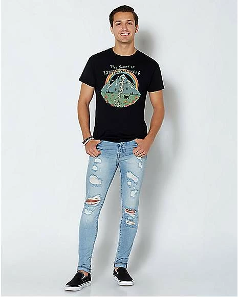 Sometimes the best thing to do is embrace the existential dread. Show off your dark side and add some style to your wardrobe when you get this officially licensed tee by Vincent Trinidad.