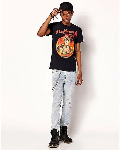 “One, two, Freddy’s coming for you…” Make it clear that you’re the ultimate horror movie fan when you rock this officially licensed A Nightmare on Elm Street T Shirt. Freddy is ready to haunt your dreams!