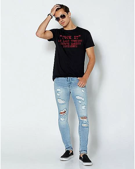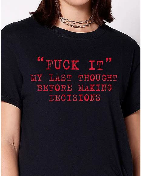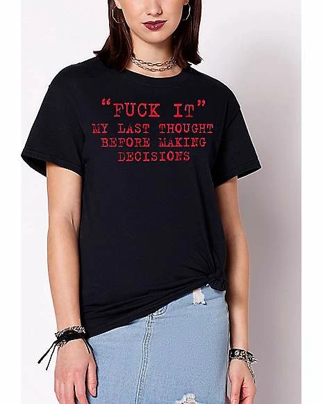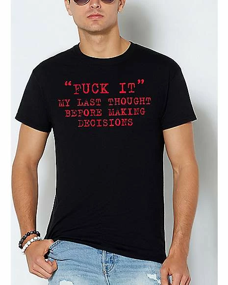 Let everyone know you’re not the overthinking type with this fuck it t shirt! This funny graphic tee is sure to turn heads whenever you wear it!