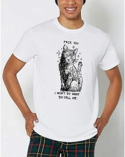 You won’t be told what to do by anyone while wearing this Fuck You Cat T Shirt. This funny t shirt features the message “I won’t do what you tell me,” on the front and is the perfect way to let everyone know you aren’t doing anything today.ย