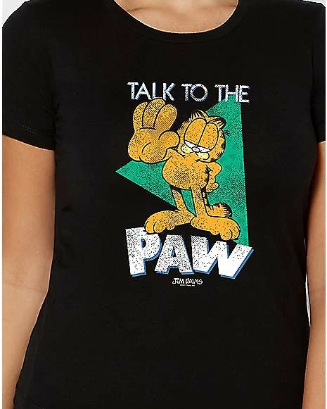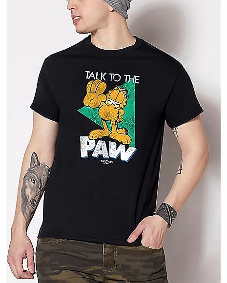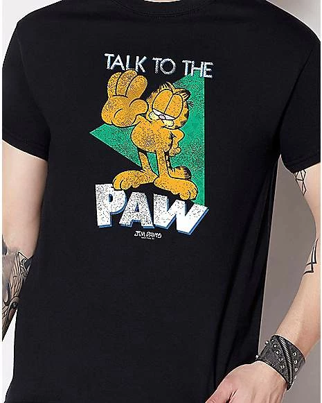 Feline sassy? Let the world know when you’re wearing our officially licensed Garfield Talk To The Paw T Shirt! This retro looking tee features everyone’s favorite orange tabby cat and is the perfect addition to any fan’s closet!ย