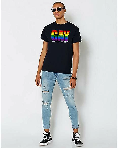 Show off your fun side with this Gay and Ready to Play t shirt! This graphic tee is the perfect way to show off what you’re all about.