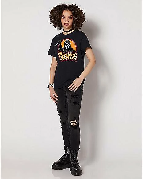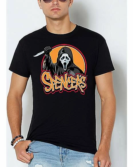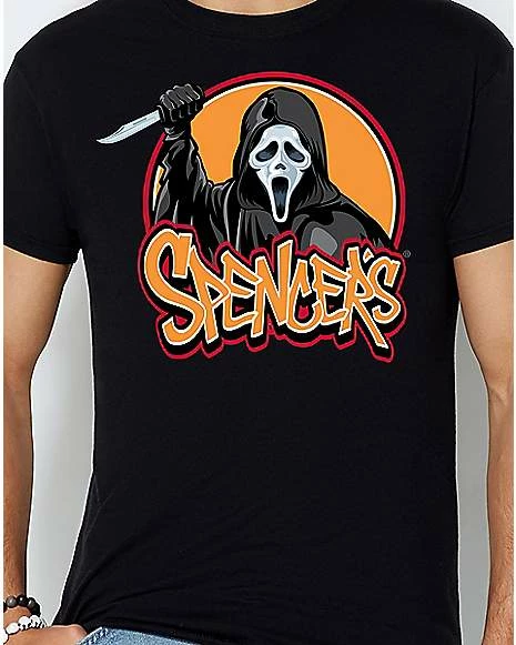Get ready to wear this Spencer’s Ghost Faceยฎ Logo T Shirt on repeat! This black tee combines nostalgia and style in one soft, easy-to-wear package. Don’t let this graphic tee ghost you – grab yours now.