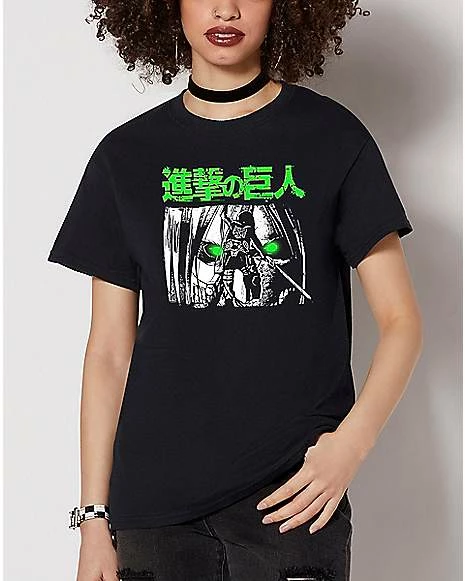 Show off how big a fan you are in this official Attack on Titan Green Eyes t shirt! This attention-getting graphic tee is a perfect addition to any anime fan’s casual wardrobe.