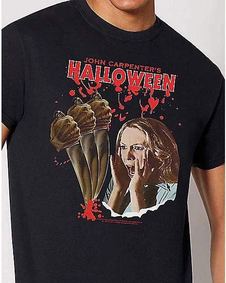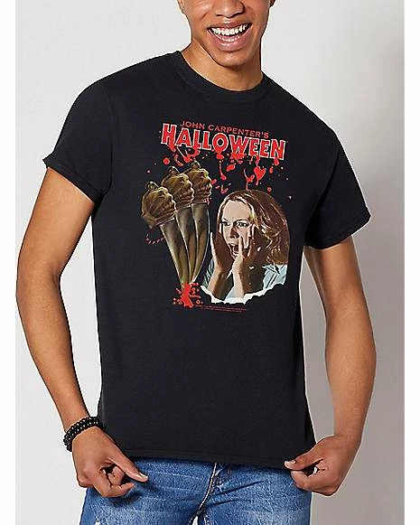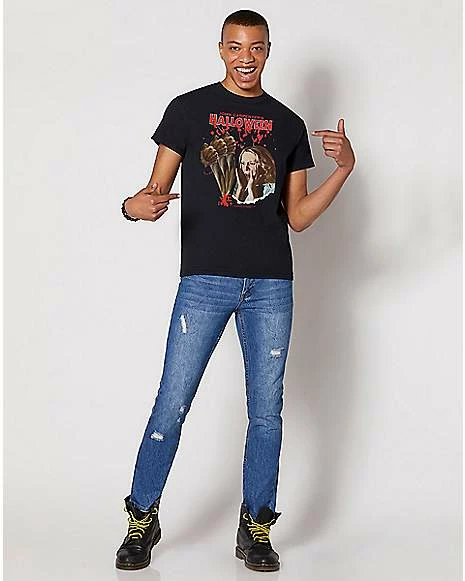 Everyone will know what youβre binging when you show off your taste in horror movies with this officially licensed Halloween T Shirt. Suit up in this stylish tee and youβll always be showing your fandom.Β