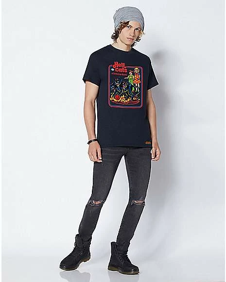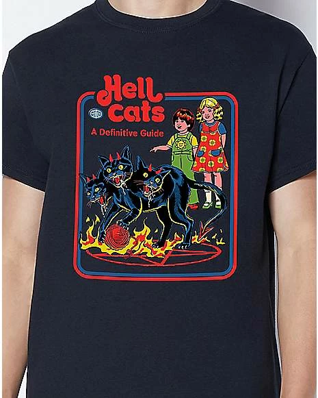 Is your cat a Hell Cat? Spoiler alert: they all are. Celebrate Hellβs cutest creatures in this officially licensed Steven Rhodes Hell Cats: A Definitive Guide t shirt!