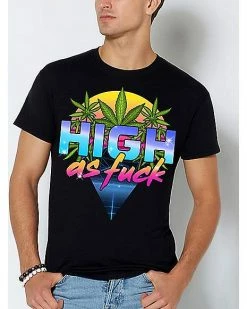 Weed lovers, this tee’s for you! This graphic tee that shows off your favorite plant and says “High As Fuck” is the perfect casual gear that’s sure to make your friends laugh.