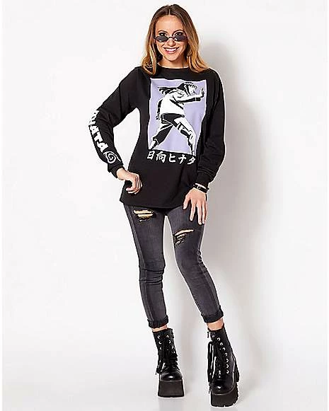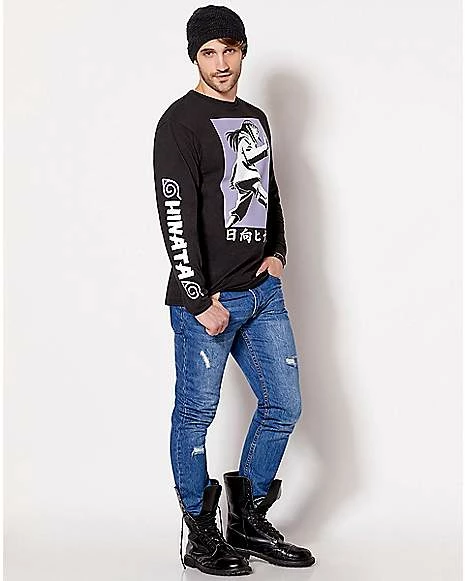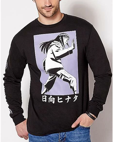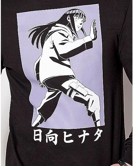 Naruto fans, show off one of your favorite characters with this Hinata long sleeve tee! This black shirt features Naruto’s wife, Hinata, showing off her ninja moves. It’s the perfect attire for anime fans.