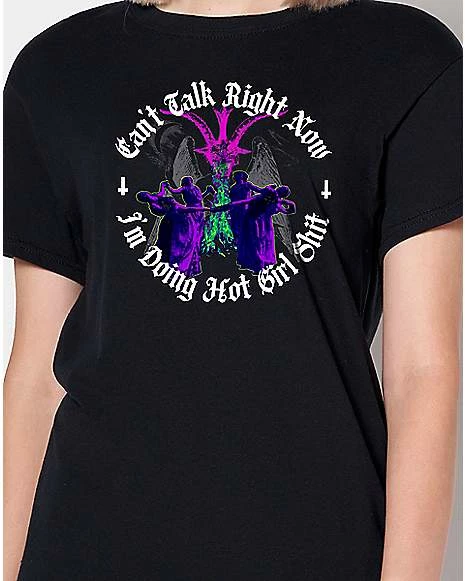 Let everyone know that you don’t have time for the BS when you wear this epic tee! The Hot Girl Shit T Shirt features an image of Baphomet and a circle of witches, as well as the words “Can’t talk right now. I’m doing hot girl shit.”ย