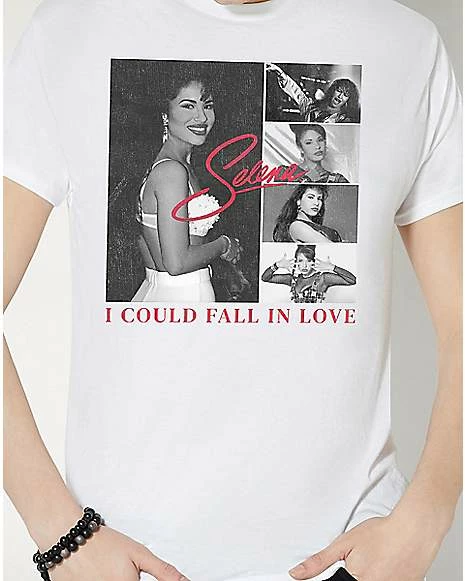 Rep one of the greatest pop sensations of all time when you rock this officially licensed Selena T Shirt. This stylish tee is inspired by the artist’s hit song, “I Could Fall In Love.” Put it on and queue up your favorite song!