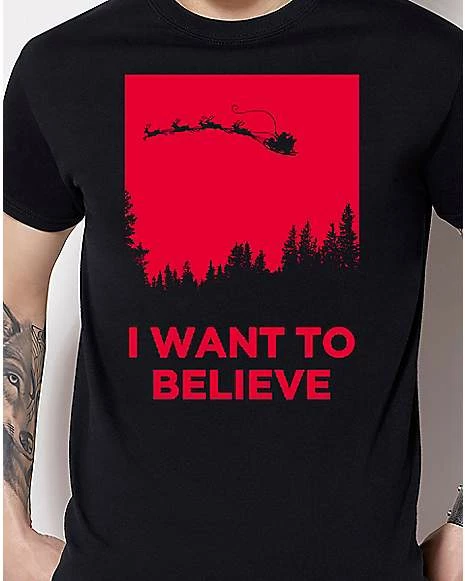 Show that you’re all about the Christmas spirit with this I Want To Believe t shirt! This festive graphic tee is the perfect holiday-inspired gear to put you in a holly, jolly mood!