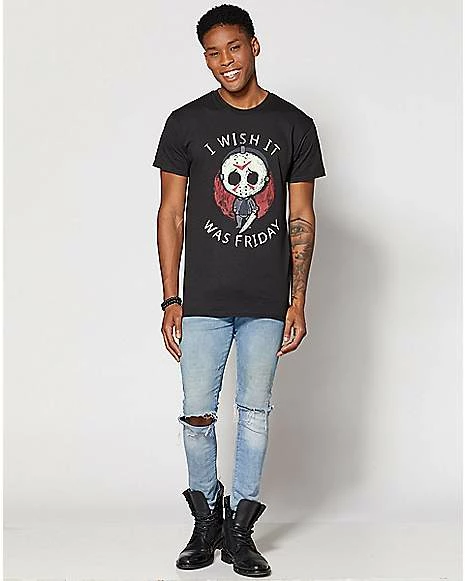 Don’t we all wish it was Friday… Add this officially licensed Jason Voorhees t shirt to your casual wardrobe and you’ll be letting everyone know you love the weekend!