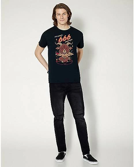 666 is the new 5 o’clock! The It’s 666 Somewhere T Shirt has an incredible design that will crack you up. Show off your dark side when you rock this epic tee.