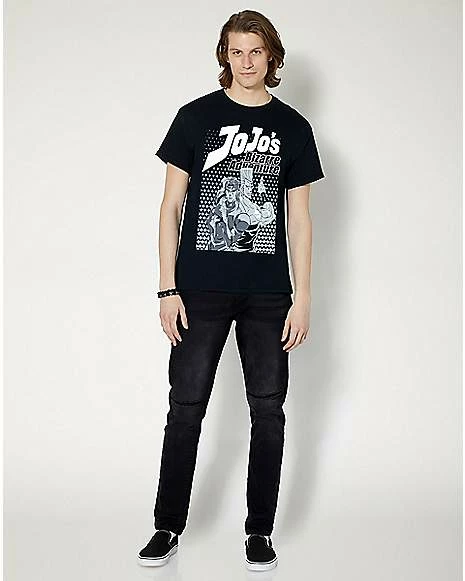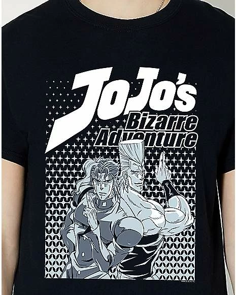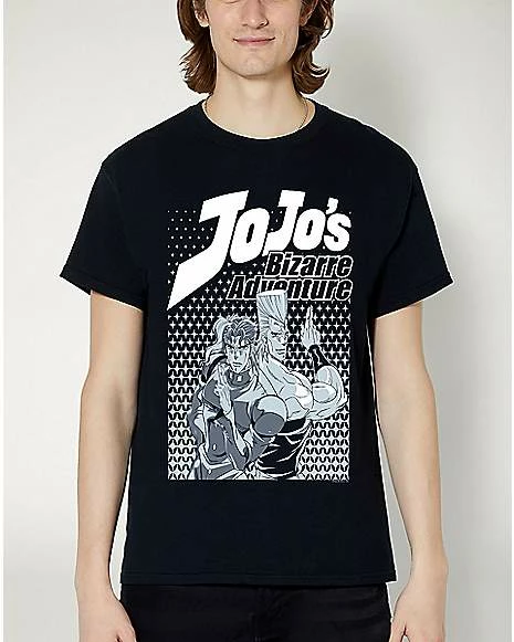 Rep your favorite anime characters when you wear this JoJo’s Bizarre Adventure Kakyoin and Polnareff t shirt! This bold graphic tee is a stylish way to tell the world that you’re a huge fan.