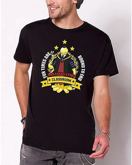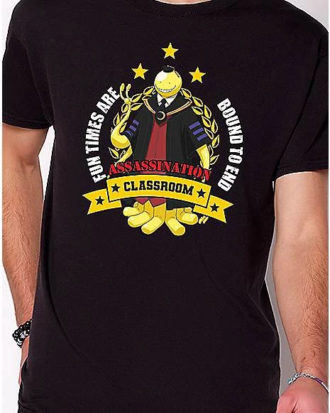 Let everyone know who your favorite anime and manga character is with this official Assassination Classroom graphic tee! This fun t shirt features Korosensei and says “Fun Times Are Bound to End.” Wearing this tee is the perfect way to add some bold style to your casual wardrobe.