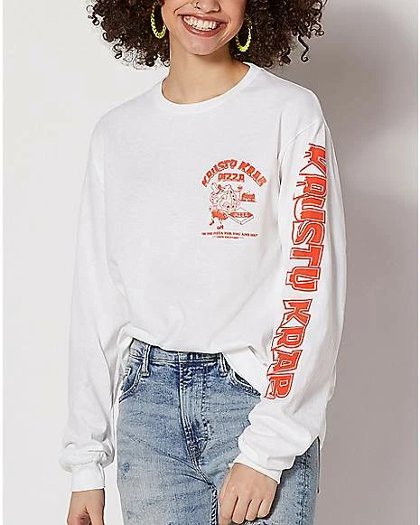 The Krusty Krab Pizza is the pizza for you and me! This officially licensed Krusty Krab Pizza T Shirt has long sleeves and will let everyone know that you are the biggest SpongeBob fan in the room!