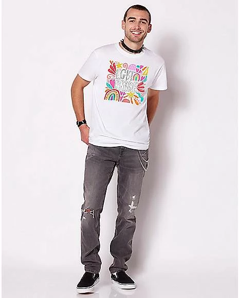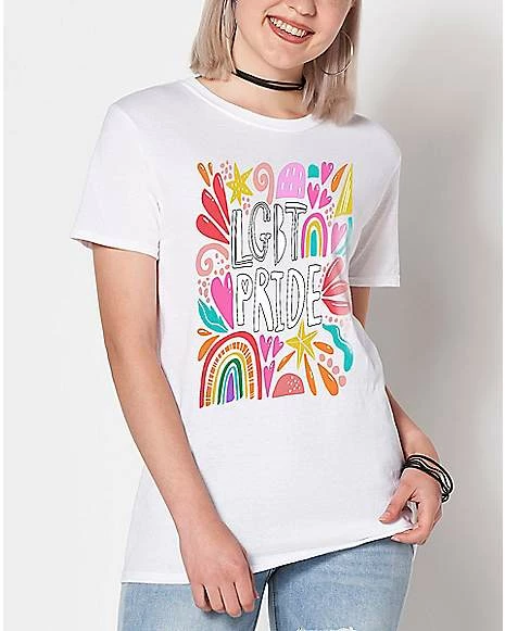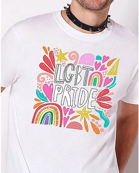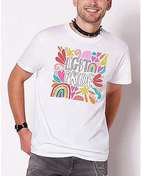 Show off your pride with this colorful tee! Featuring hearts, rainbows, stars, and more, this tee is a fun addition to any wardrobe and is perfect for parades and parties alike.
