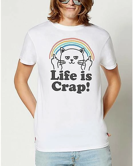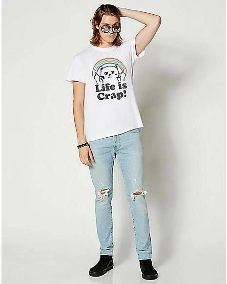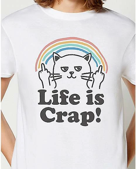 Life is crap! Show off your cat-titude in this fresh and funny white tee.