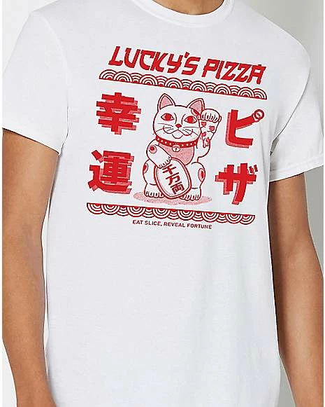 Add a fresh new look to your casual outfit by adding this Lucky’s Pizza T Shirt to your casual wardrobe. This awesome tee from Gubby Designs is sure to have you looking and feeling your best in any situation.ย