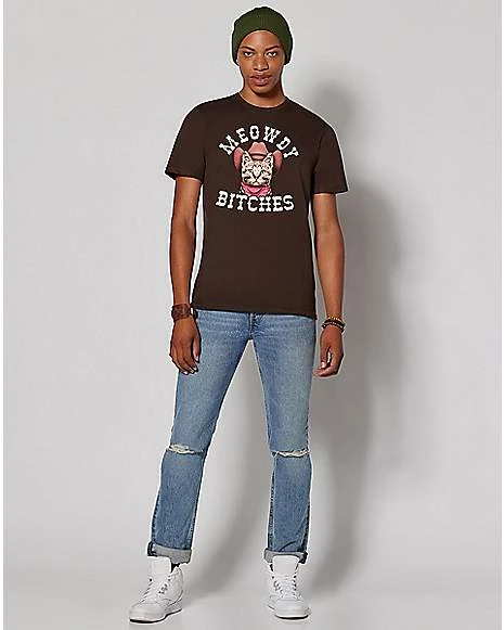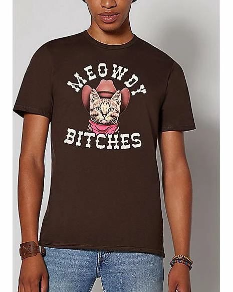 Cat lovers, you’ll want to rock this hilarious Meowdy Bitches t shirt! This funny graphic tee is the perfect way to make everyone laugh while adding some unforgettable style to your casual wardrobe.