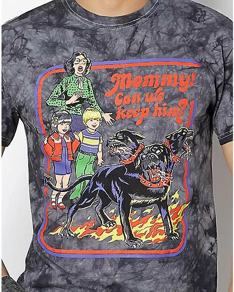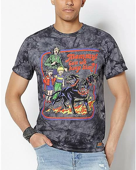 Looking for retro style with a touch of dark humor? This Steven Rhodes t shirt is sure to do the trick. The tie dye design will have you standing out in any crowd, and you’ll make heads turn when they see the imagery! The sewn-in Steven Rhodes patch will show off your fandom instantly.