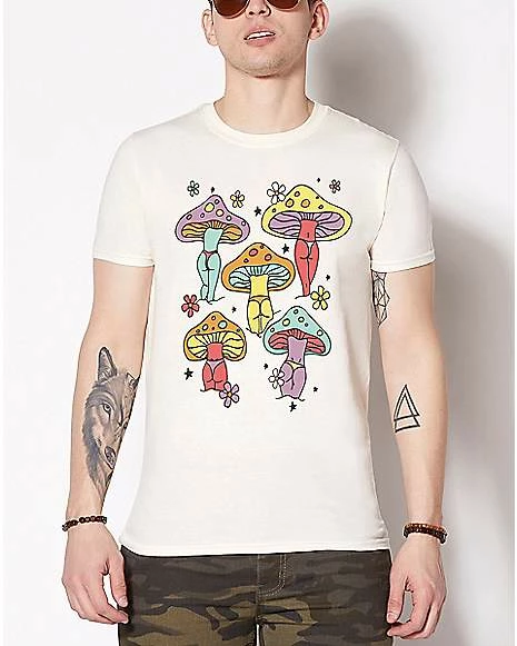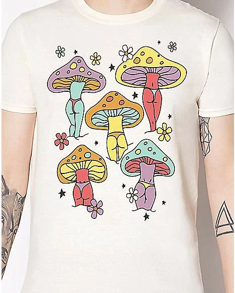 Nature is beautiful. This groovy graphic tee features an artistic mash-up of mushrooms and bodies. Add some color to your wardrobe with this soft and colorful tee!