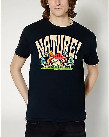 Show off your appreciation for all things in nature with this Nature Mushroom T Shirt. This cool tee features a patch of smiling mushrooms on it and is sure to put you in a good mood while wearing it.