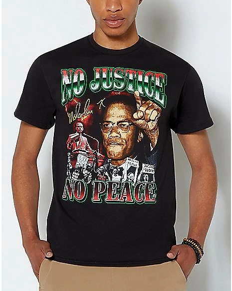 Stand up for what’s right when you rock this No Justice No Peace Malcolm X T Shirt. This officially licensed shirt will make a statement and promote equality in our society!