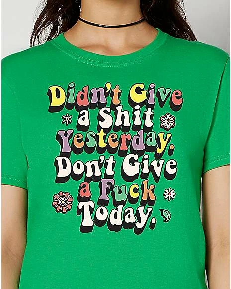 Looking to make a statement with your wardrobe? This tee is a perfect choice! This hilarious tee, which features the phrase “Didn’t give a shit yesterday, don’t give a fuck today,” will take your look to the next level and get your message across with ease.