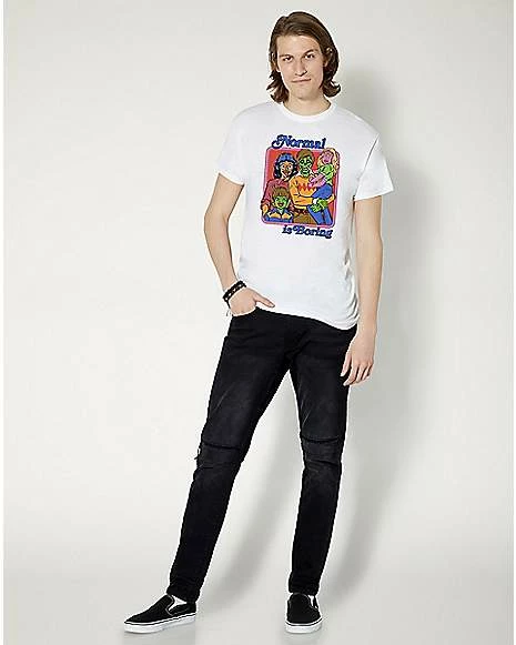Let people know you’re not like everyone else when you wear this Steven Rhodes Normal Is Boring t shirt! This funny graphic tee shows off your sense of humor and is sure to bring plenty of laughs every time you wear it.