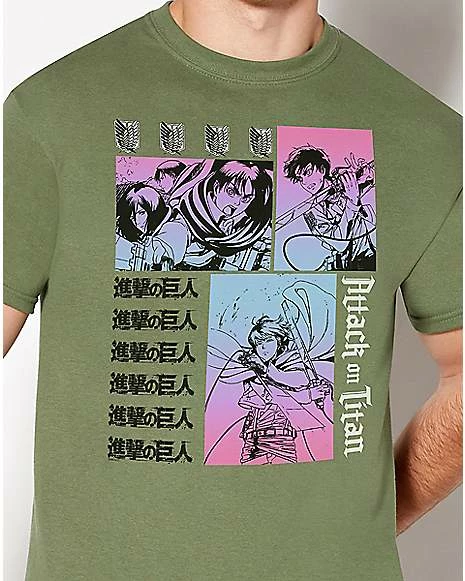Celebrate your favorite anime when you wear this official Attack on Titan panel logos t shirt! This stylish graphic tee will be sure to get you noticed whenever you wear it.