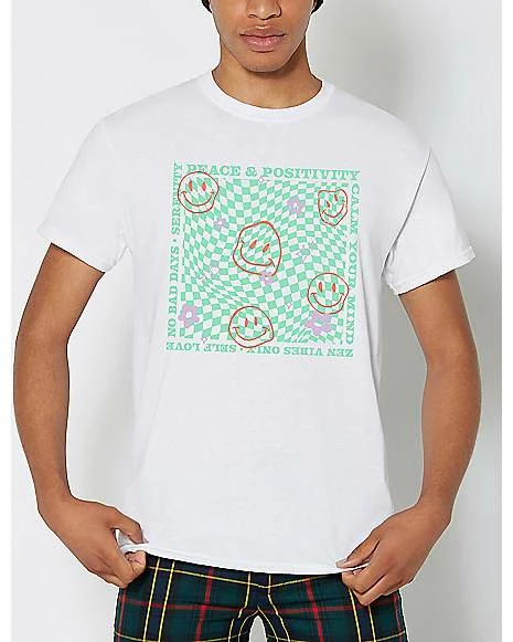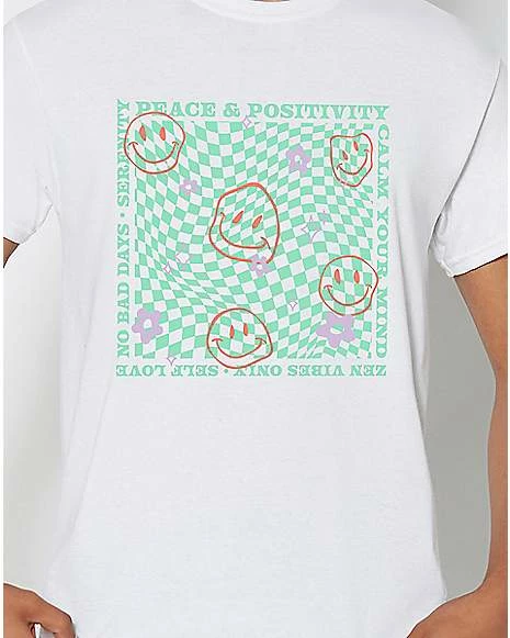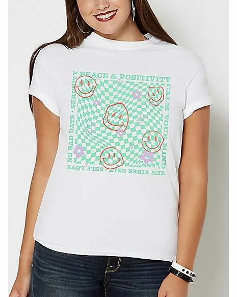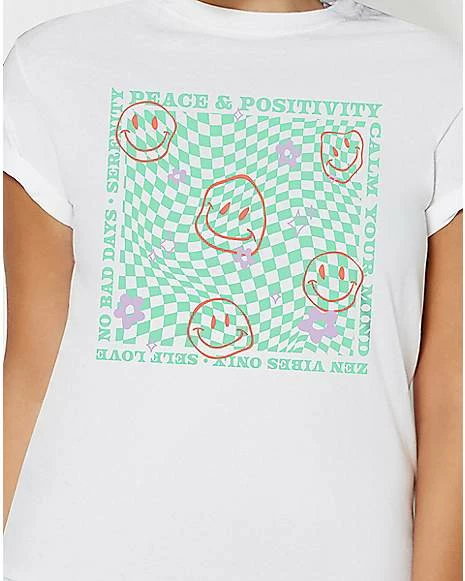 It’s all about peace and positivity. Give yourself, and others, a gentle reminder to be kind to your mind with ourย Peace & Positivity Smiley T Shirt. This vibrant tee will add a pop of color to any outfit, and make sure you prioritize self-care!ย